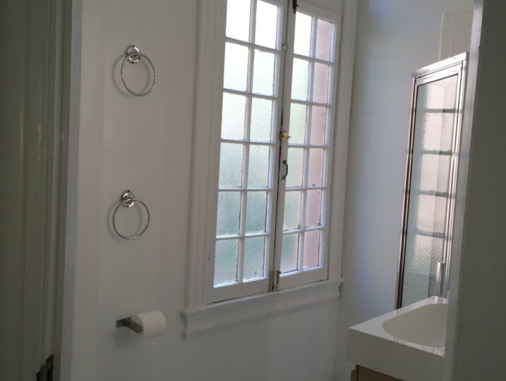 The home is renovated and has 1000 square feet of indoor living space, featuring high ceilings, tall windows and original French doors. Enhancing those quarters are two balconies: just off the kitchen for dining alfresco, and next to the bedroom for morning coffee and quiet conversation outdoors.